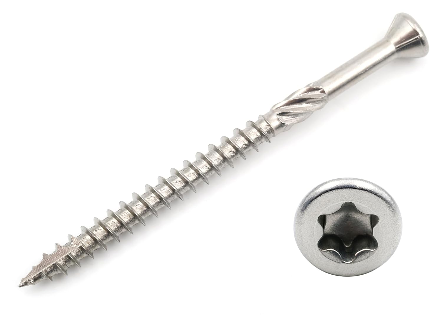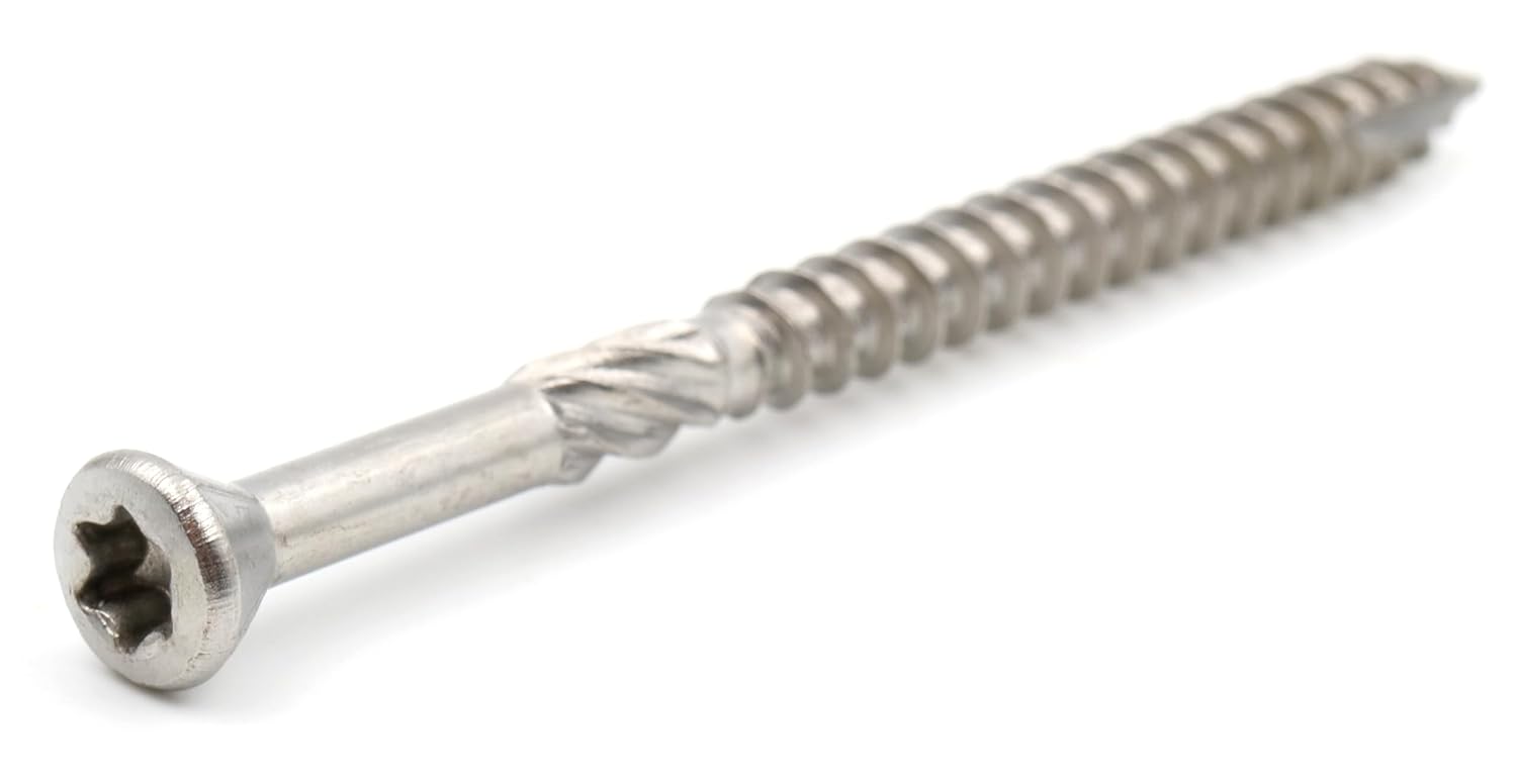Design61 Terrassenschrauben 5x70 mm Edelstahl TX25 Edelstahlschrauben Holz Dielenschraube Rostfrei mit Cutspitze Reibteil Fräsrippen Ideal für Terrassendielen & Außenbau 200 Stück