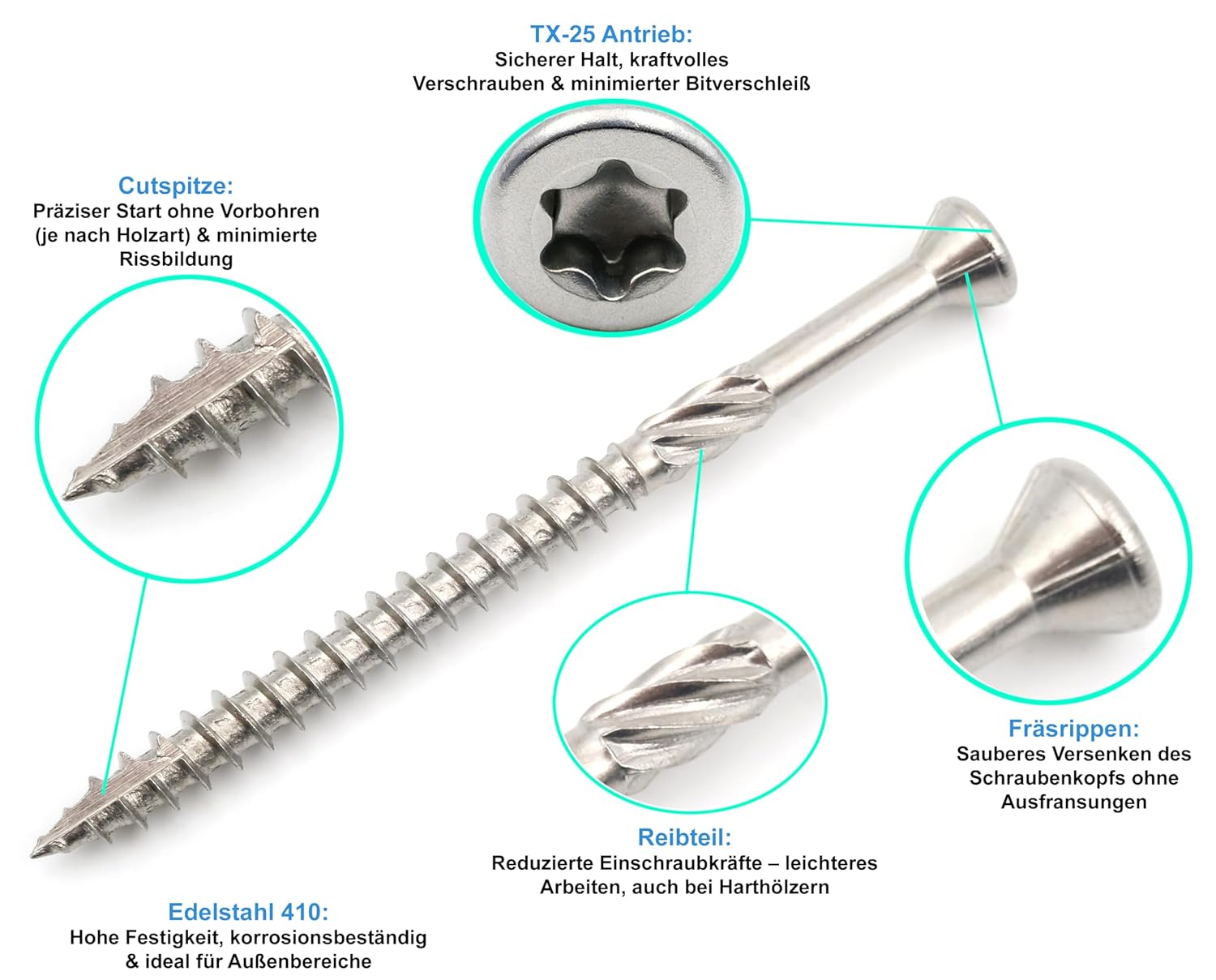 - Sauberes & splitterfreies Verschrauben: Spezielle Schraubengeometrie für müheloses Einschrauben, reduzierte Spaltbildung im Holz und professionelle, optisch saubere Ergebnisse.